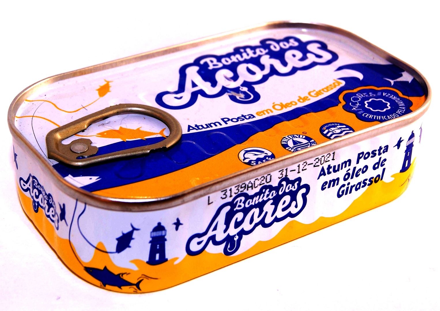 Pour commencer Santa Catarina est une petite conserverie de l’ile Sao Jorge dans l’Archipel des Açores. La pêche se fait à la ligne avec plusieurs appâts et la variété de thon est la Bonite, prisée pour sa chair tendre et exquise. En 2011, GREENPEACE leur a décerné un prix récompensant une pêche raisonnée respectueuse des espèces aquatiques. Ces miettes de thon à l’huile de tournesol sont un bel exemple de leur savoir-faire!