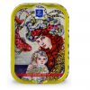 Cette boîte sublime abrite quatre à six sardines d’exception : en provenance des eaux de Saint-Gilles-Croix-de-Vie. Les sardines de garde se préparent manuellement et elles doivent être extra fraîches. Dans leur huile d’olive vierge extra, elles s’affinent pendant dix ans, se confisent patiemment, pour, au bout, révéler un arôme et un fondant fabuleux.