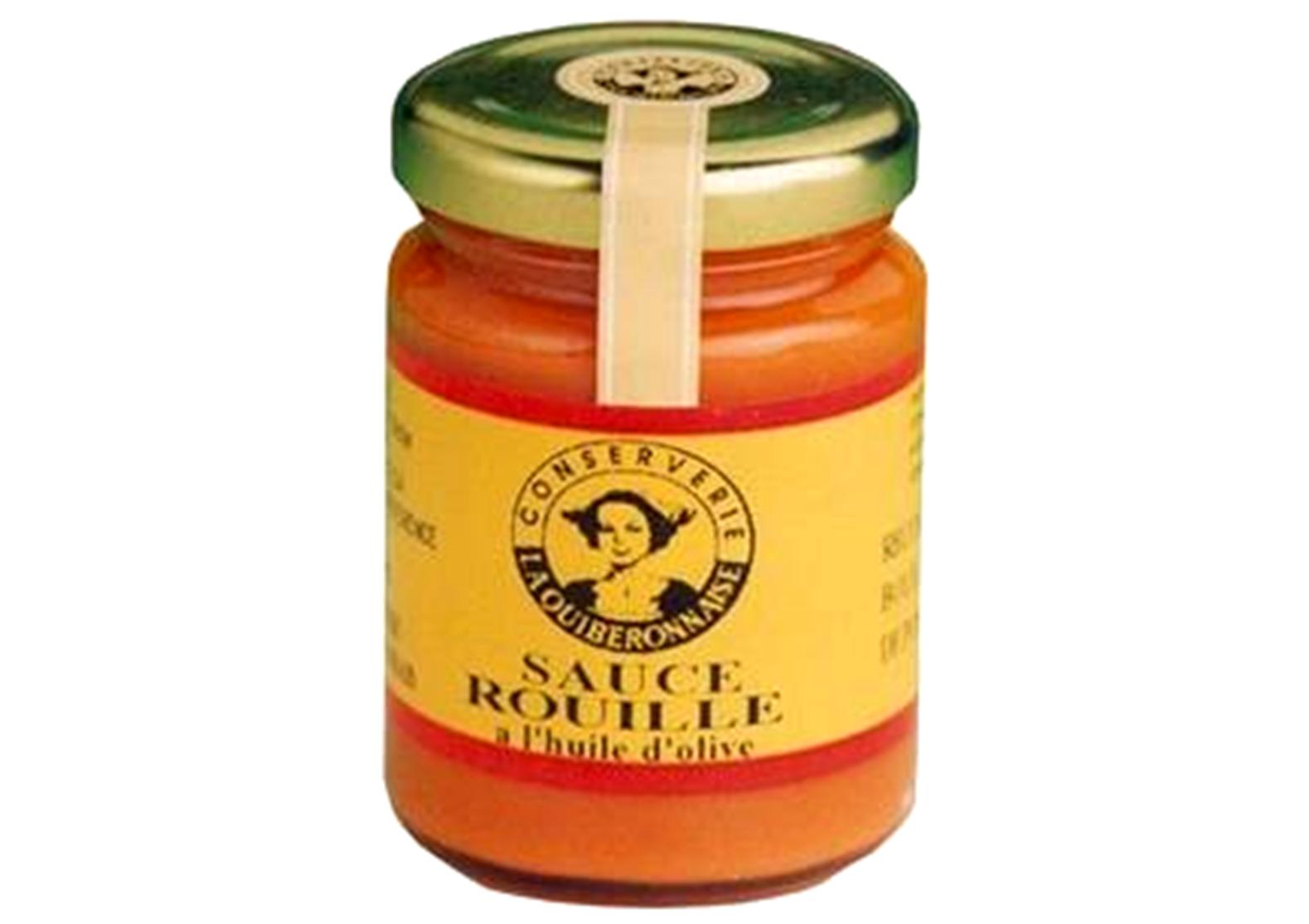 La conserverie bretonne La Quiberonnaise nous propose une rouille pour sublimer ses soupes. Idéale pour accompagner la soupe de poisson (ou pour faire des toasts à l’apéritif).Cette sauce rouille ne contient pas de jaune d’oeuf et elle n’est pas de type Sétoise. La recette provient du pays Catalan et n’est pas produite par la Quiberonnaise. Elle peut se conserver au réfrigérateur plusieurs jours si on rajoute de l’huile par dessus.